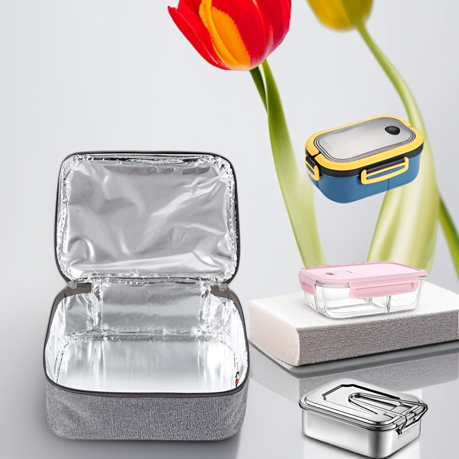 حقيبة غداء كهربائية متينة، بسيطة ومريحة للتنقل إلى العمل أو المدرسة، بلون موحد.